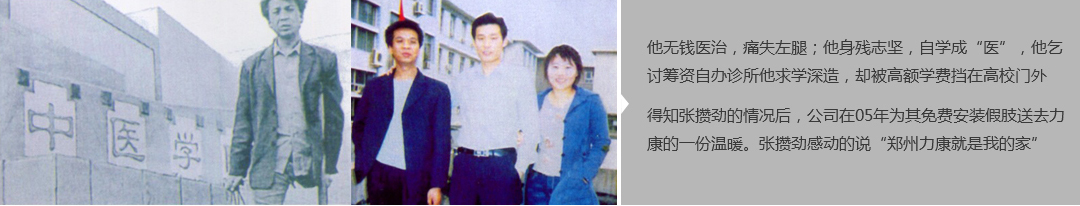 鄭州市力康假肢矯形器有限公司(簡稱力康),是一家專業(yè)從事假肢矯形器的設計、研發(fā)、制作及裝 配的專業(yè)機構。成立于1992年是河南省唯一一家福利企業(yè)。力康下設業(yè)務部、技術部、住院部、康復 部、售后服務部,并配有現代化的裝配車間和功能齊全的訓練大廳,為殘疾朋友康復訓練提供了可靠 保障。總經理穿戴假肢多年,有著豐富的臨床經驗和親身體會;多年來,力康已為全國幾十萬名殘疾 朋友安裝上舒適、美觀、耐用的假肢和矯形器具,使他們更大限度地恢復了正常的工作和生活。“產 品即人品”的質量理念、先進的技術、實惠的價格、完善的售后服務是力康取勝的法寶……
